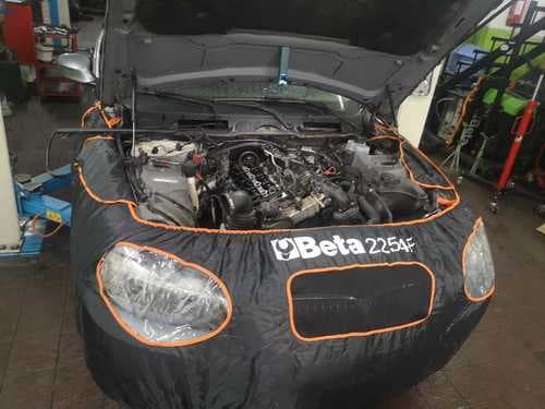 Sostituzione cinghia distribuzione, cinghia alternatore, cinghia comandi vari.